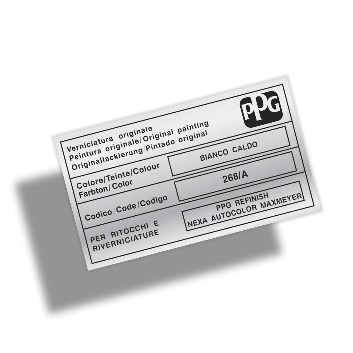 ETIQUETA AUTO-ADESIVA REFERENTE AO CÓDIGO DA COR BIANCO CALDO PARA VEÍCULOS FIAT, JEEP, ALFA-ROMEO E LANCIA