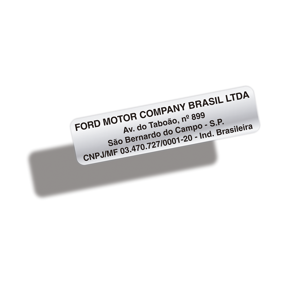 ADESIVO "FORD MOTOR COMPANY BRASIL LTDA - SÃO BERNARDO DO CAMPO - AV. TABOÃO - CNPJ 03.470.727/0001-20" PARA COFRE DO MOTOR VEÍCULOS FORD
