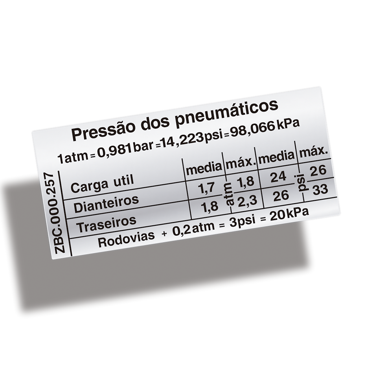 ETIQUETA METALIZADA AUTO-ADESIVA DA PRESSÃO DE CALIBRAGEM DOS PNEUS VW SANTANA E QUANTUM EQUIPADO COM PNEUS DA MEDIDA 185/70 R13