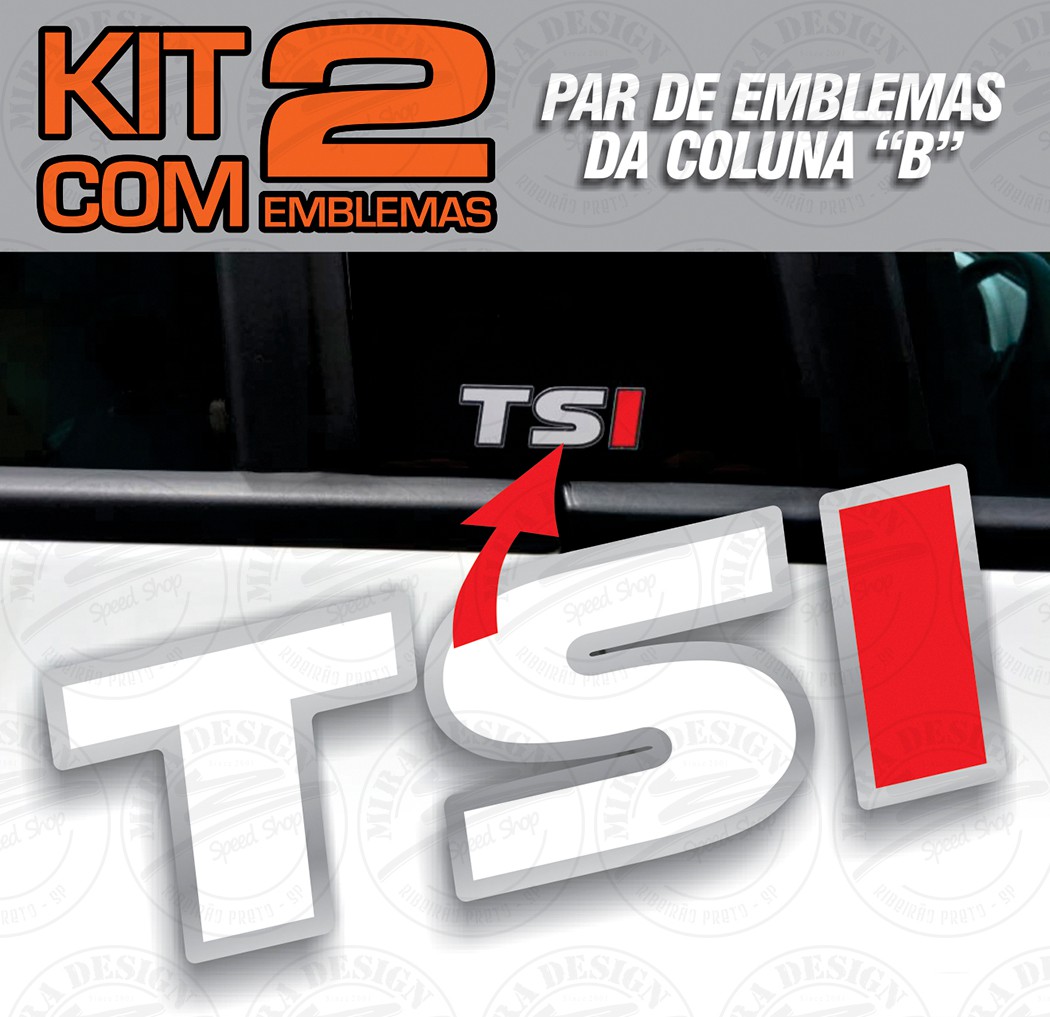 PAR DE EMBLEMAS AUTO-ADESIVOS METALIZADOS "TSI" PARA COLUNA DA PORTA VW UP TSI